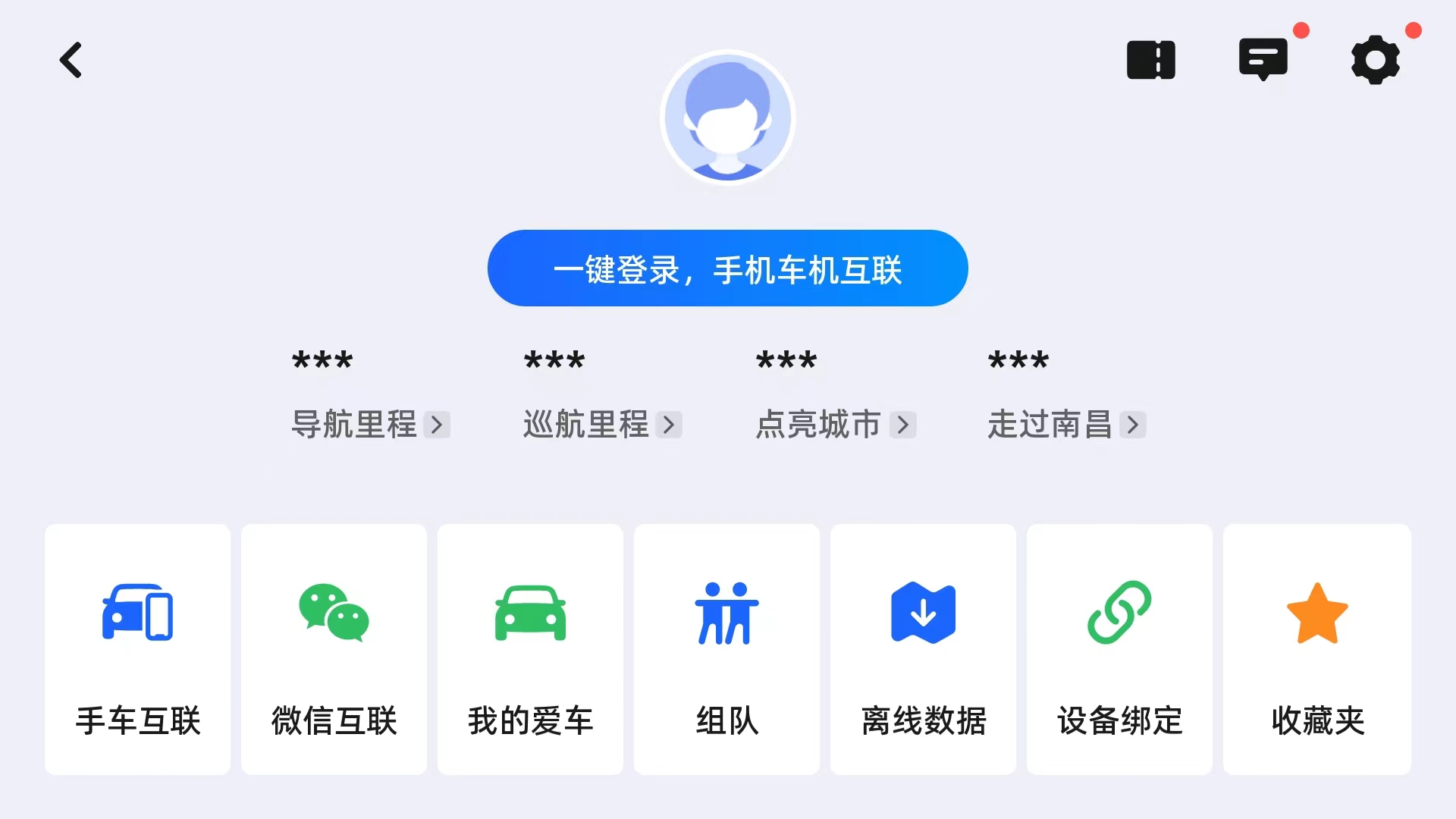 1、打开高德车机共存版最新版本,进入应用主界面,点击上方【头像】图标,