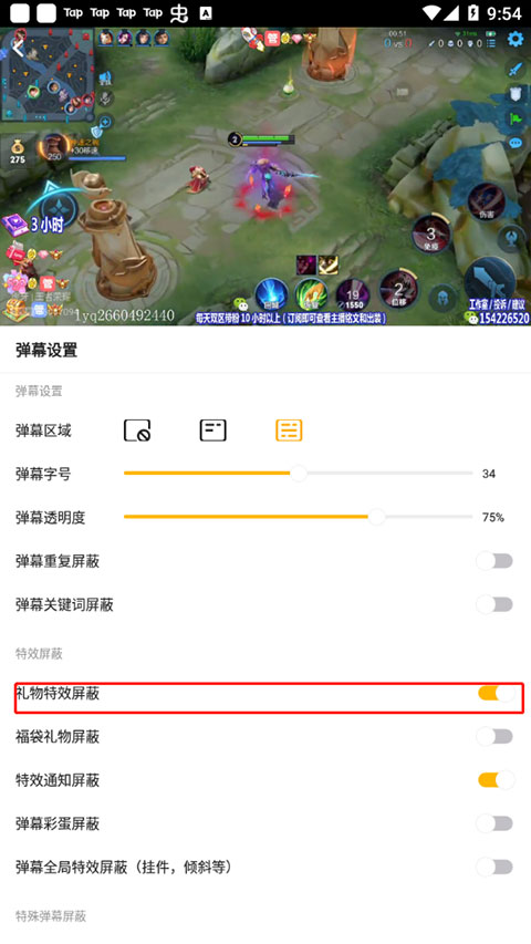 4、最后在弹出的窗口设置中,点击如图所示的“屏蔽特效”即可,