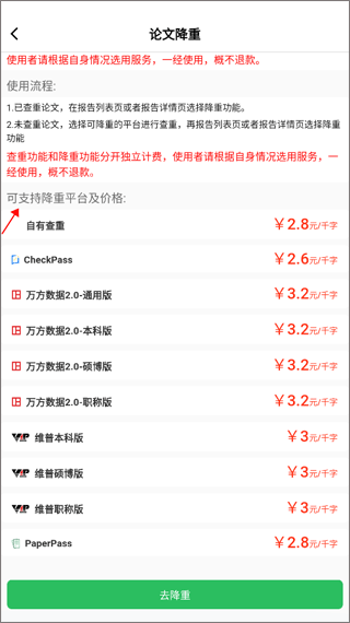 注:查重功能和降重功能分开独立计费,使用者请根据自身情况选用服务,一经使用,概不退款。