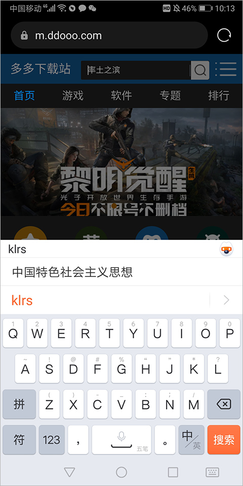 此时我们就可以在输入"klrs"四码时就会出现自定义的“中国特色社会主义思想”词语了