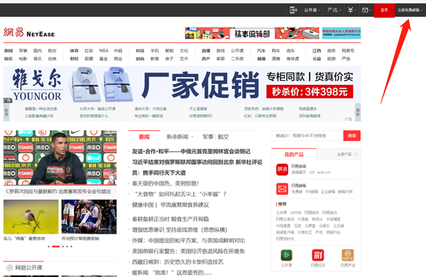 2、然后在网易官网首页右上角选择【注册免费邮箱】。