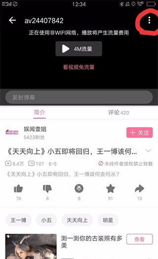 看到喜欢的视频点进去,出现视频界面后点右上角那三个点;