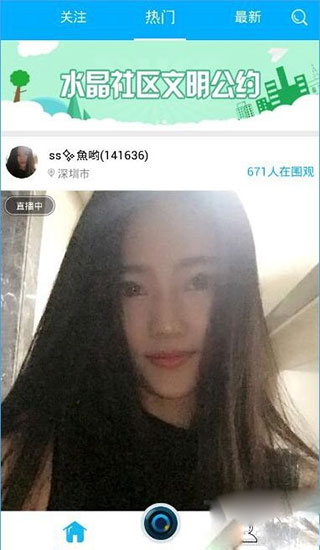 1、打开水晶直播主页,即可观看到众多热门的直播,同时还可以了解你关注主播的新直播信息,并且在新界面有新直播的信息哟。