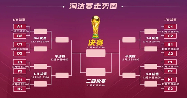 2022卡塔尔世界杯淘汰赛赛程时间表: