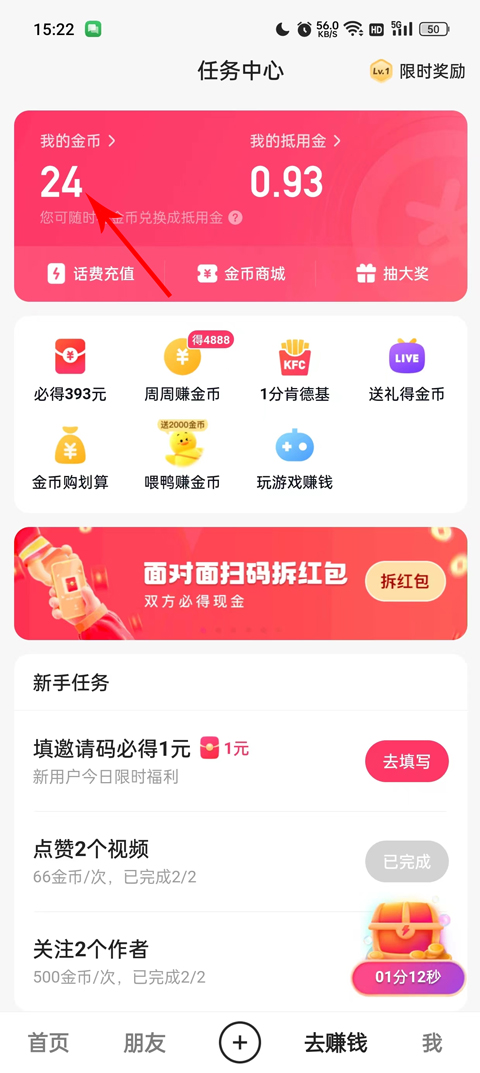2、参加新手任务,填写邀请码必得1元红包奖励;