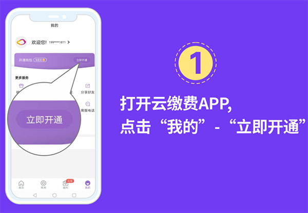 1、打开云缴费APP,点击“我的”-“立即开通”