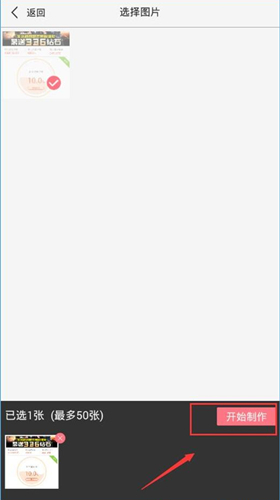 3、点击批量水印后即进行手机的相册选择照片,点击开始制作;