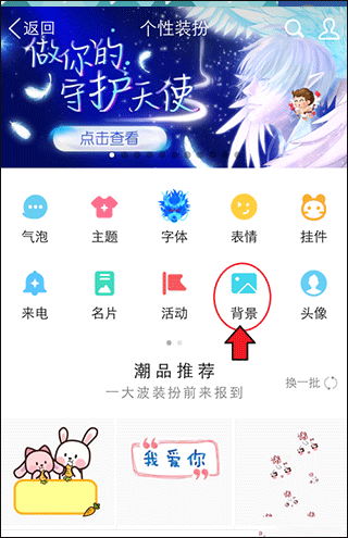 3、接下来我们就会进入到个性装扮界面,我们点击界面下方的背景图标。