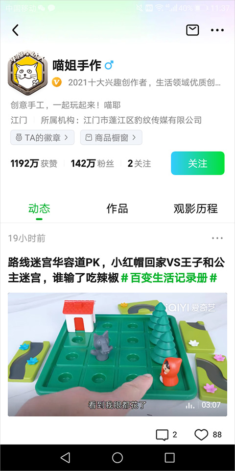 在打开的新页面中,用户可以关注很多优质的爱奇艺大伽号·,像喵姐手作号对于一些喜欢制作小物品的用户来说可以前去关注下,里面有很多有创意的小物品制作方式与大家分享