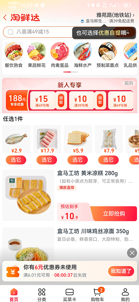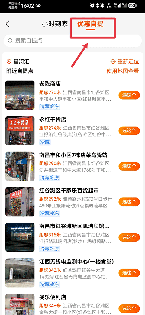 2、进入后选择优惠自提界面,并选择自提点就可以啦