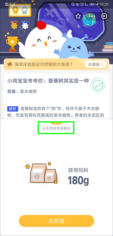 7、接下来,回答正确即可获得180g的饲料奖励,答错了则只能获得30g饲料的安慰;