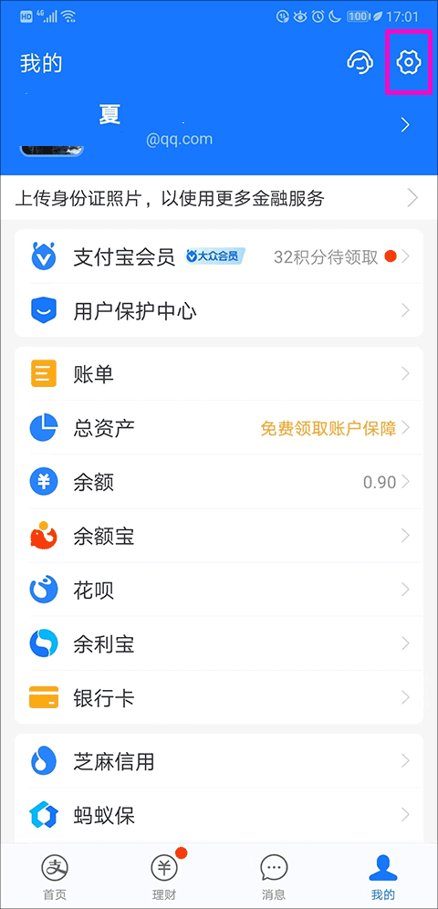 1、首先,打开软件,在我的界面找到并点击右上角的“齿轮”选项;