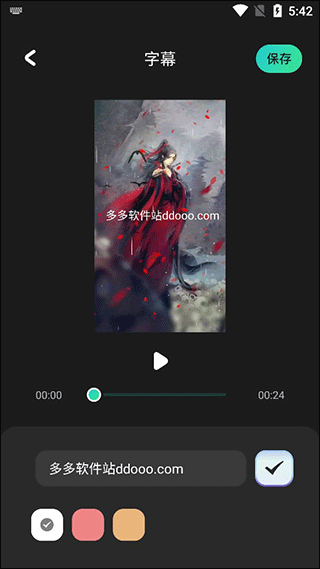 2、选择好要添加字幕的视频确认后在文本框输入添加的字幕,选择好字幕颜色后再点击√视频中就会出现字幕了;