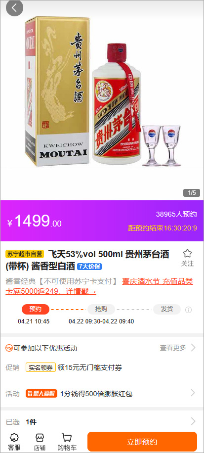 3、仅限苏宁易购APP抢购(须更新至新版APP)。注:具体预约抢购时间以页面为准