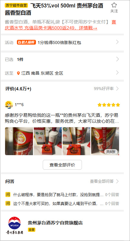最让我觉得特别的是苏宁易购对茅台酒的抢购服务。通过实名认证就能参与每天的抢购活动,价格优惠还能溯源查真伪,这对喜欢收藏茅台的人来说是个好消息。