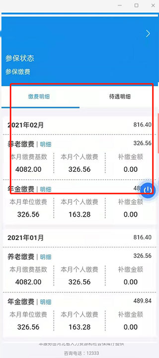 3、点开“参保缴费”显示本人“缴费明细”和“待遇明细”第三步:点开“参保缴费”显示本人“缴费明细”和“待遇明细”