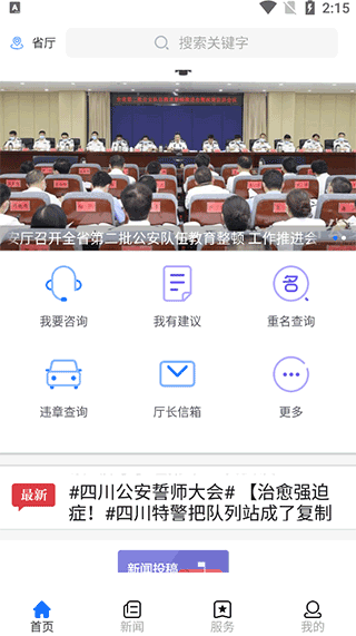 最近发现了一个超级方便的四川公安app!这个软件真的太实用了,特别是对那些平时没时间去公安局办事的人来说简直是救命稻草。打开App就能看到各种最新消息和专栏信息,首页还有违章查询、信箱反馈等功能,感觉像有个24小时在线的警察蜀黍在帮你解决问题。