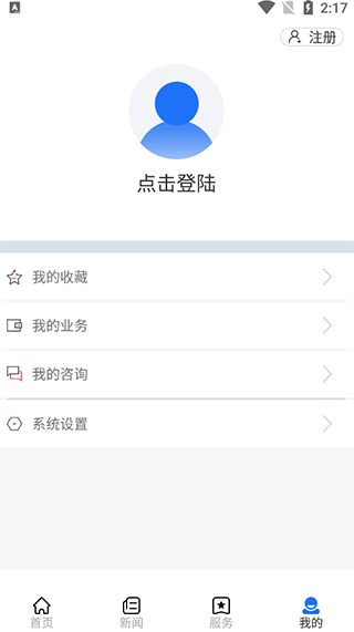 4、在“我的”一栏,用户可以浏览自己的收藏情况、可以查看自己的业务进度、可以查看自己的咨询情况、可以对系统进行设置。