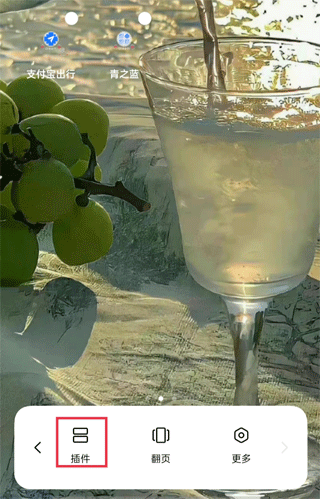 1、在手机桌面上双指捏合,弹出各个功能选项,找到“插件”。