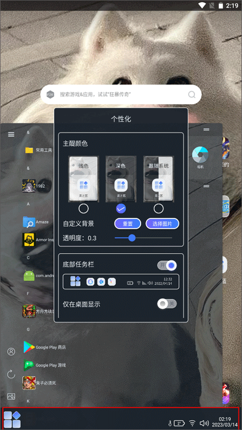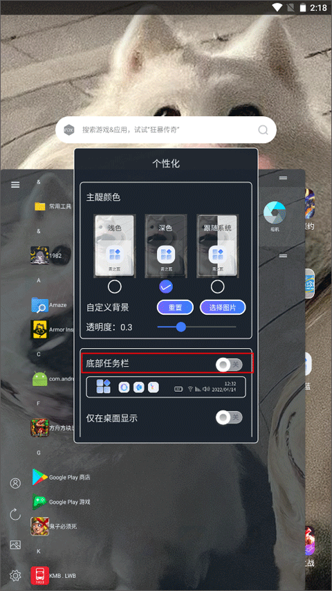 6、支持设置任务栏仅在桌面显示的功能。支持设置任务栏高度、透明度等。