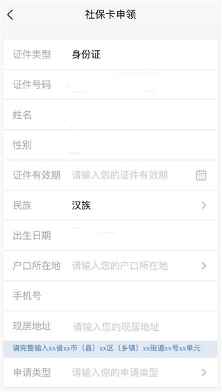 提示:客户须在“现居住地”一栏填写详细的社保卡邮寄接收地址。