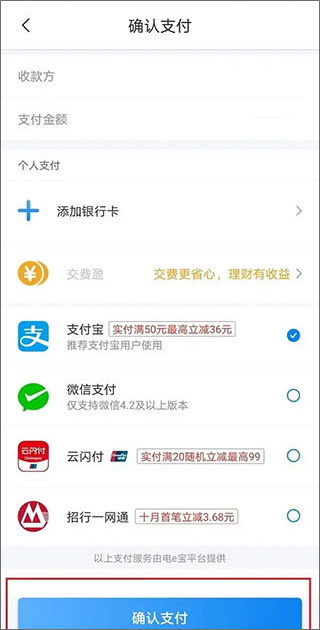 4、然后选择支付方式进行支付即可。