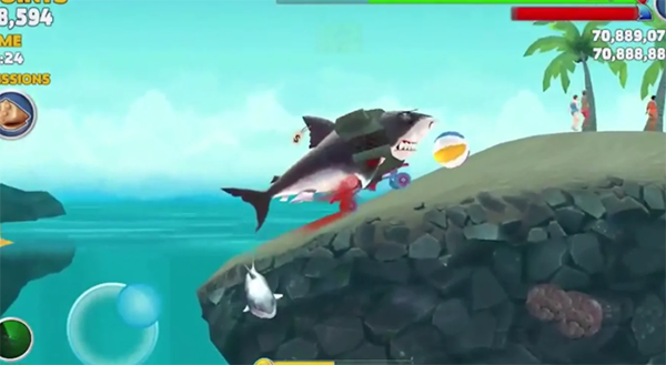 字母:玩家在海中收集完HUNGRY全部字母后,鲨鱼就会巨大化,短时间进入无敌模式,什么都能吃。