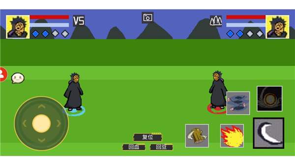 此外,游戏操作方法非常简单,与传统的格斗类手游相似,像素火影最新版游戏的左侧界面可以控制角色的上下左右移动,而右侧则是可以释放技能,与其不同的是,该游戏在界面中央还加入了三大功能按钮,分别是:复位(将所有设置全部恢复到默认配置)、回血(恢复所有角色的生命值)、回豆(回满角色技能大招所需的豆豆),而且每个角色英雄的技能都是有所不同,玩家可以选择自己心仪的角色英雄,再释放出华丽的连招,将对手击败,可玩性极高,有需要的用户快来下载吧。