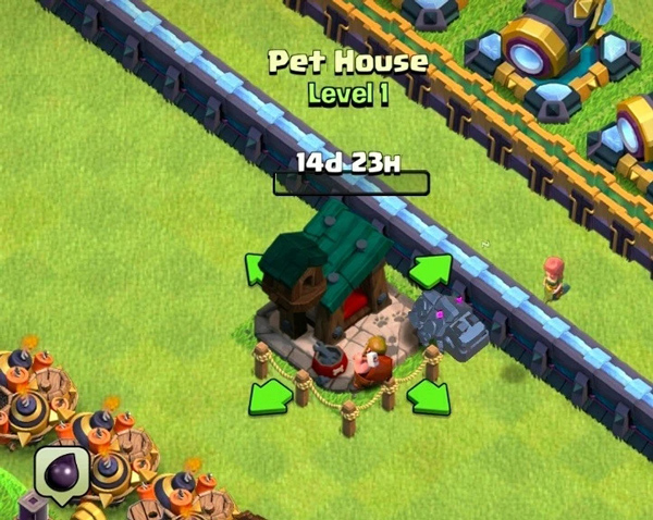 咱们准备好建筑书和建筑锤就可以开始了升级啦,准备充足的话还可以赶上联赛;建筑书是一定要留给大本的,只有达成了14本,宠物小屋才会出现,建筑工人才能出手,并且还能多带一个法术,提升还是很明显的。