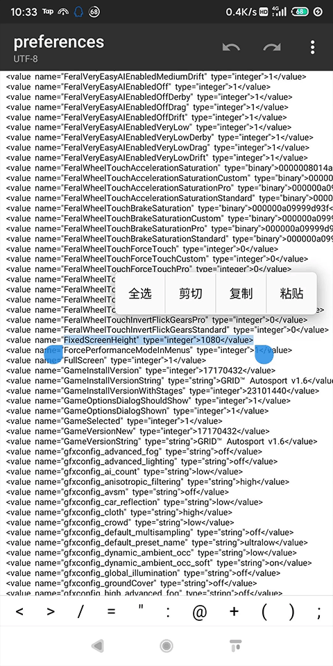 1、首先下载个mt管理器, 不要root都可以改,找到这个路径:/Android/data/com.feralinteractive.gridas/files/feral_app_support/ 里的preferences 文件。