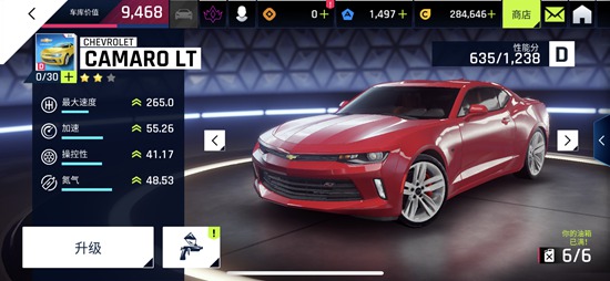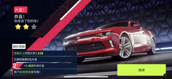 比如D级车雪佛兰科迈罗,解锁车辆后性能上限是910,升星之后,上限变为1238。