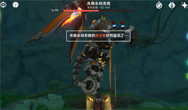 龙兽会周期释放大招,根据前面受到伤害最高的元素产生对应的元素抗性,同时切换地面和起飞的状态,所以尽可能快速的解决它不要让他有发挥空间;