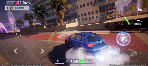 3、想要漂移可以快速转向积攒氮气,我们点击方向键和手刹键;