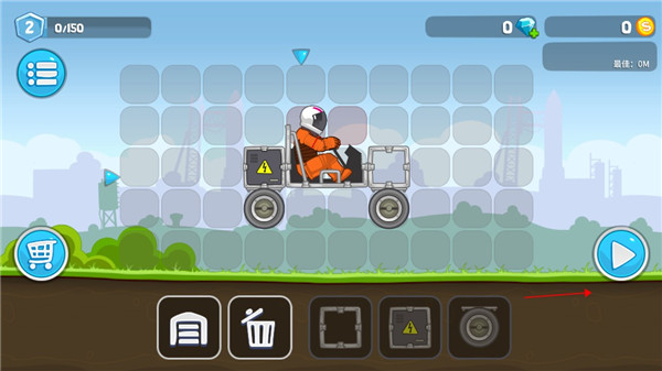 4、游戏的操作非常简单,玩法类似于登山赛车,如果车头翘起玩家就按住刹车;