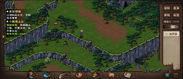 玩家可以先去峨眉山找到吴有为,和其打听小敏的相关事宜,找到小敏打听爹爹妈妈。接着玩家需要继续在峨眉山找李婆婆闲聊,然后玩家会得知小敏有些许异常,这时在对话框里选择应下此事。玩家在睡一觉后走去村口跟踪小敏,这里小编提前把躲藏的位置告诉大家,分别是村口、马车内、小敏左侧树林、草丛。