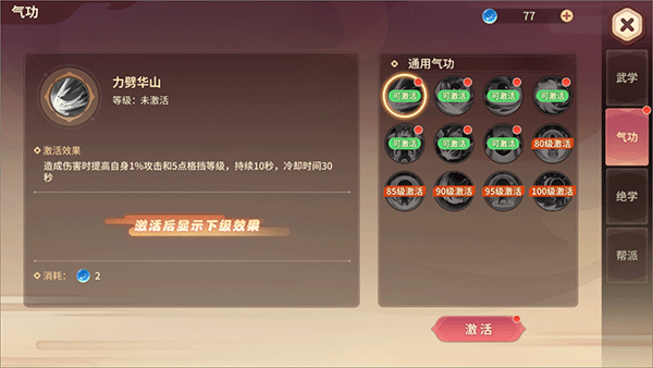 当心法达到一定练度,还可以进行升星,让侠客的功力更上一层楼!当然,在帮贡有限的情况下,各位大侠需要根据自己的职业定位与追求,选择主修的心法为佳!