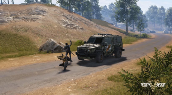3、只要有人对车进行攻击,运输车会暂时停止移动,车内的守卫会下车自动搜敌并展开反击。
