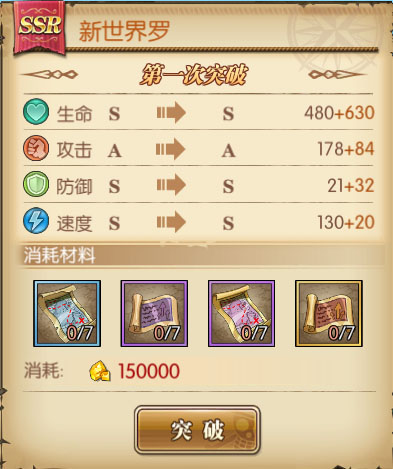 新区的船长们需要注意啦!新世界罗突破环节所使用到的道具为:突破海图&突破卷轴。