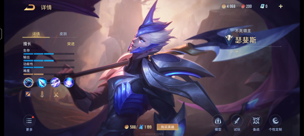 死亡领主是一个战士类型的英雄,但是他的身体素质和伤害能力在战士中都无法达到战士的层次。