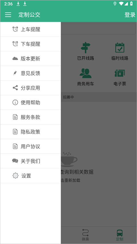 6、点击左上角三条线则可以看到有上车下车提醒,使用大家不要担心会做过站。