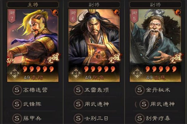 主将:SP袁绍,战法推荐 藤甲盾+武锋阵