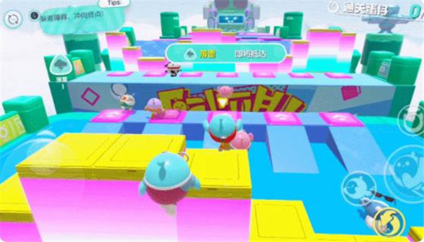 1、巧用滚蛋夺第一竞速的一大难点就是障碍物,除了翻转的地板、摇晃的摆锤,移动的方块和向后的履带等等,都是阻碍我们速通的因素。对于普通的障碍物,找好时机可以慢慢跳过去,但是最快的方法肯定是直接滚起来。而且在“滚蛋”模式下,由于我们的速度变快了,跳跃的距离也会相应的变远,所以在面对一些需要跳跃(或者等待时间较长)的障碍时,可以直接远跳过关。