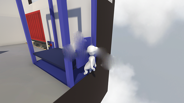 如图,人物被升降机卡住了屁股,怎么动都动不了了。