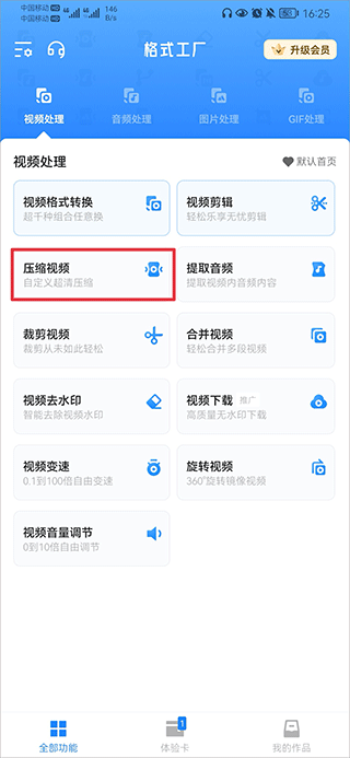 1、在首页中点击压缩视频