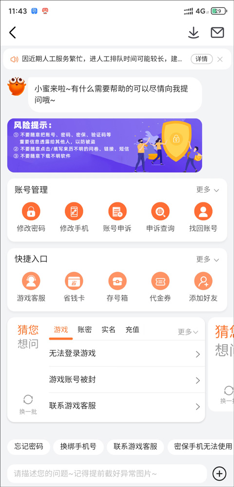 软件功能很强大,比如遇到游戏难题可以快速找到攻略,再也不用担心打不过。还有社区功能,轻松结识志同道合的朋友,一起玩游戏交流技巧,乐趣无穷。至于账号密码管理,也很方便,进入设置就能查看和修改。如果忘记账号,还可以通过多种方式找回,比如提供角色信息、IMEI码、手机号或充值订单等。