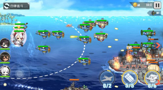 5、游戏采取双排式策略作战方式,配合即时战斗模式,真实还原海战临场感。