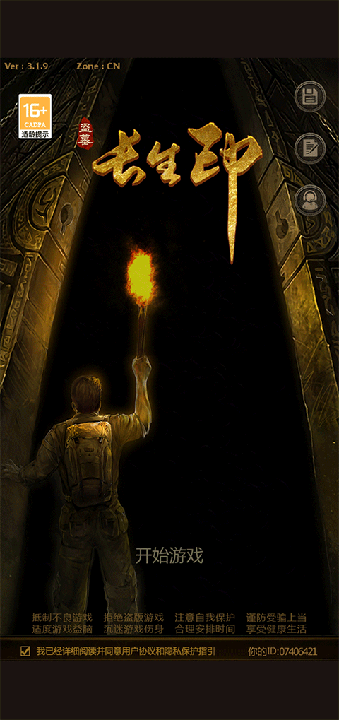 1、首先打开盗墓长生印最新版本,点击开始游戏;