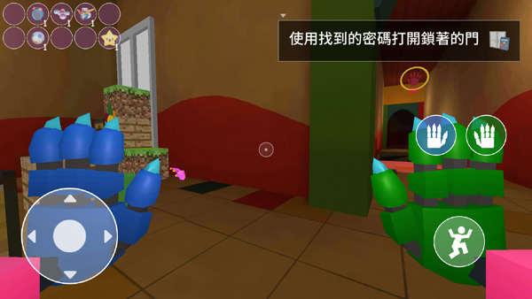 2、这里以玩具工厂为例,游戏的操作非常的简单,左边控制人物移动,右边控制机械手、跳跃;