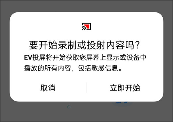 点击【立即开始】开启投屏,点击【取消】退出投屏。