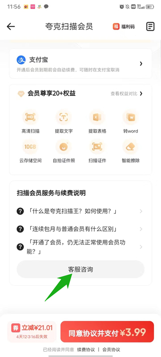 夸克扫描王对于普通用户来说是不需要收费的,但是想要更多的使用权益,需要变成vip会员。